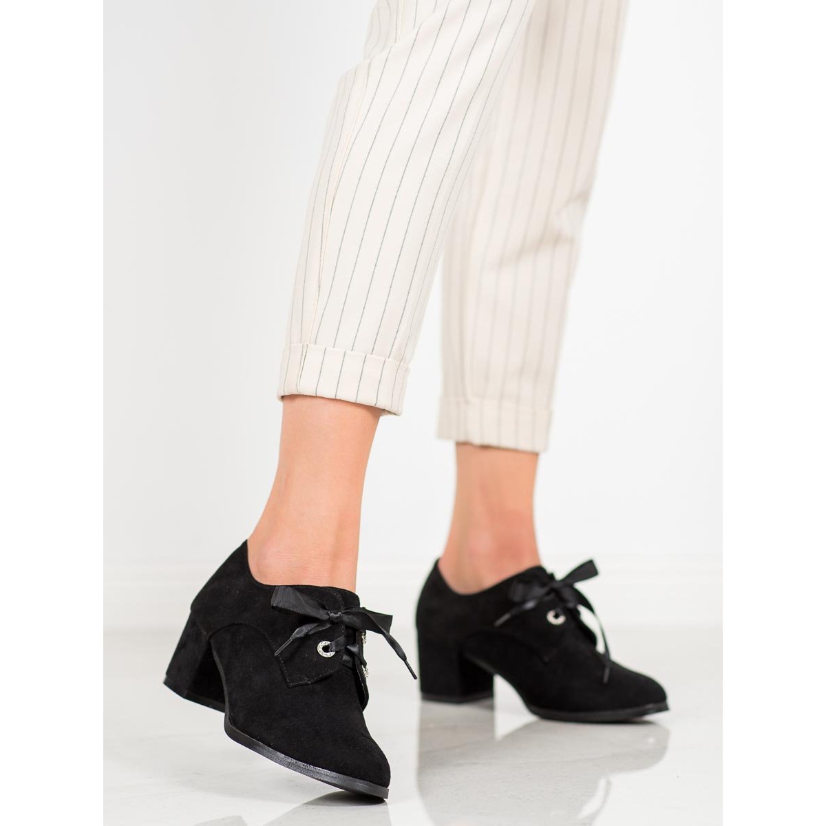 Découvrez le classique de l'élégance dans une version moderne - les escarpins noirs à lacets et à talons hauts du fabricant SHELOVET. Ces magnifiques chaussures pour femmes ont été soigneusement confectionnées à partir de daim respectueux de l'environnement, ce qui en fait un choix idéal pour celles qui préfèrent les produits végétaliens. Leur bout rond classique et leur talon doux intégré assurent un confort de port tout au long de la journée.