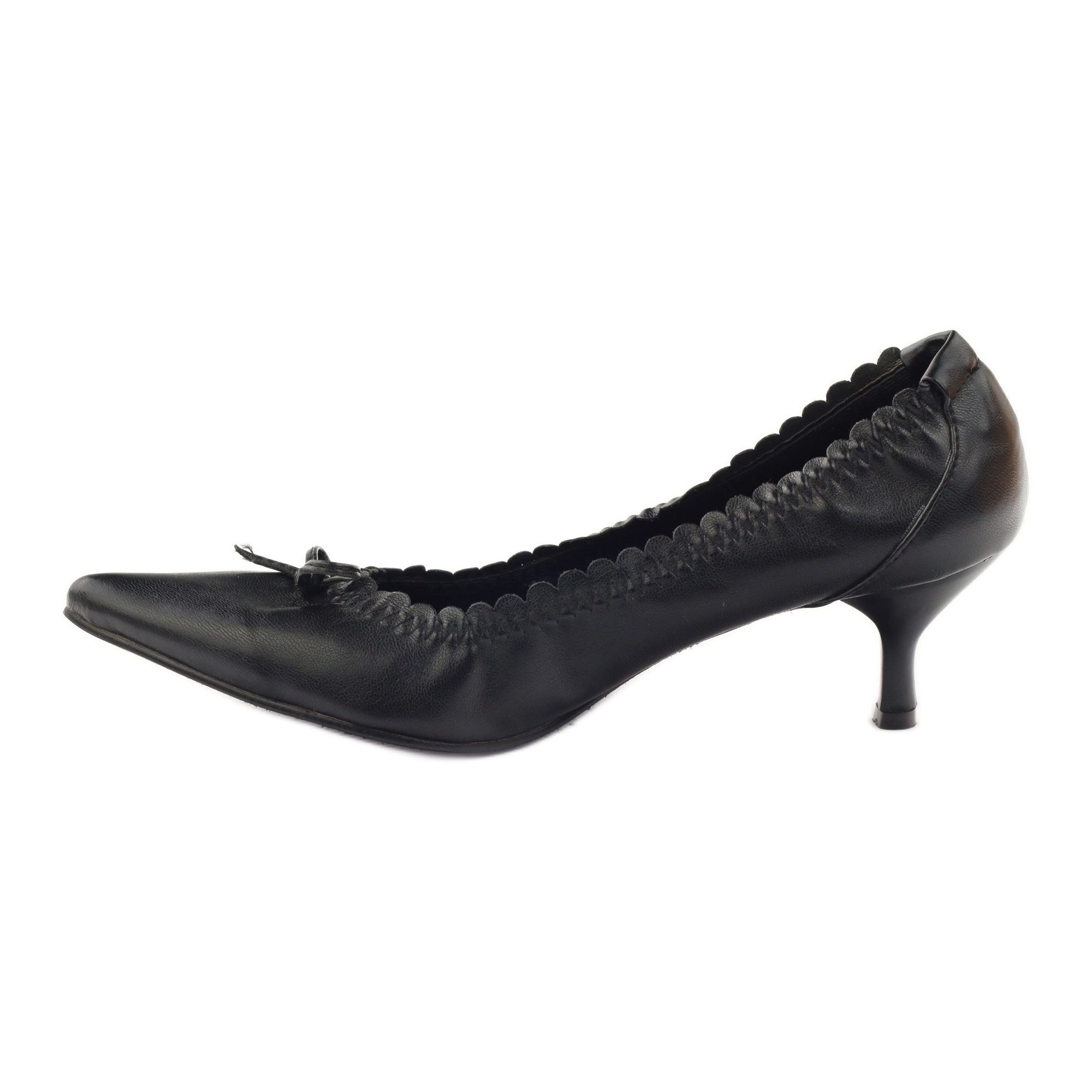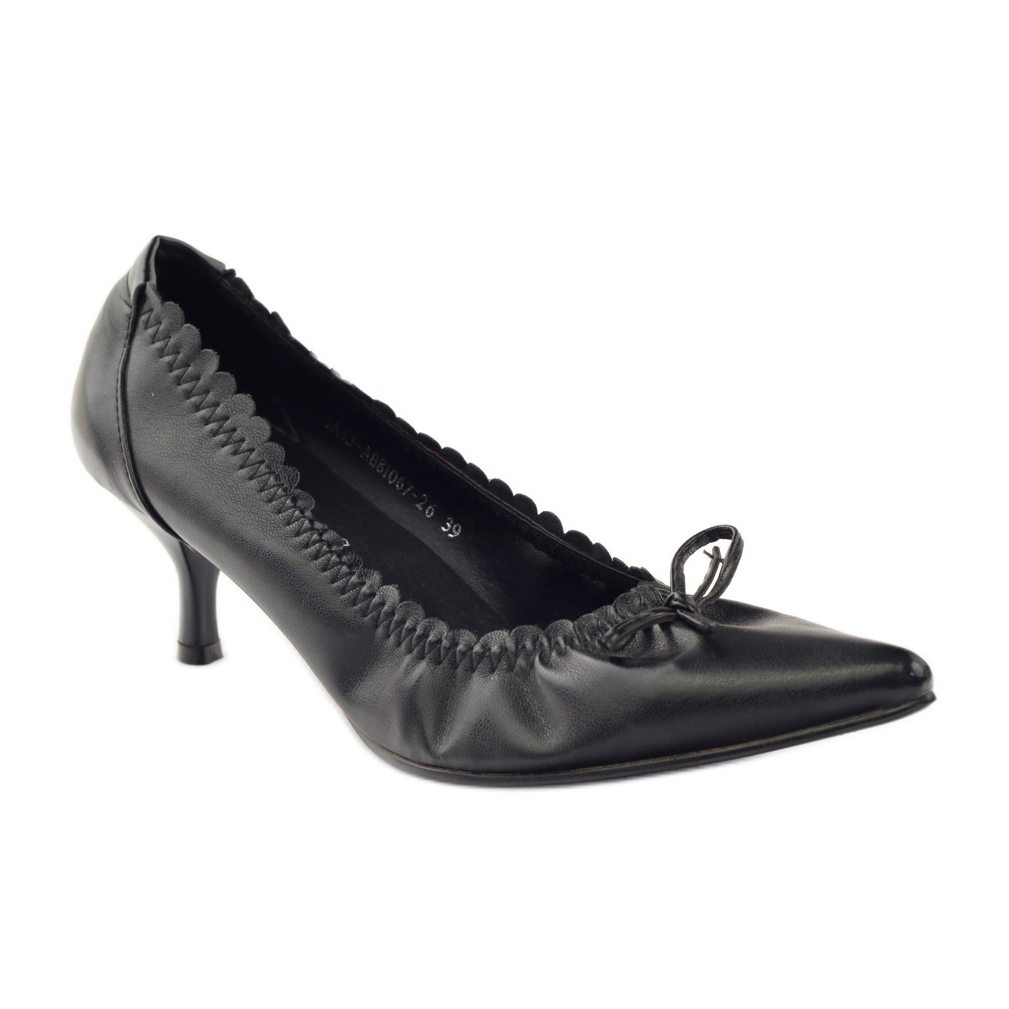 Le modèle 81067 a un bout pointu, qui allonge encore les jambes et ajoute de l'élégance. Les chaussures sont disponibles dans une couleur noire classique, s'adaptant parfaitement à différents styles, notamment ceux aux couleurs sobres. La semelle en plastique offre une bonne adhérence et la fermeture à enfiler facilite l'enfilage.