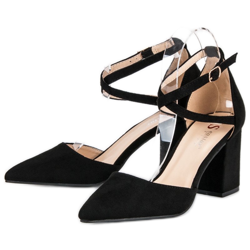Fabriqués en éco-cuir suédé naturel et agréable au toucher, ces escarpins sont non seulement esthétiques, mais également durables et résistants aux dommages. La hauteur du talon de 9 cm sur la tige ajoute de la finesse et de l'élégance à la silhouette, ce qui donne aux jambes un aspect élancé et charmant. Un avantage supplémentaire est le talon stable, qui assure un confort de port même pendant de longues heures.
