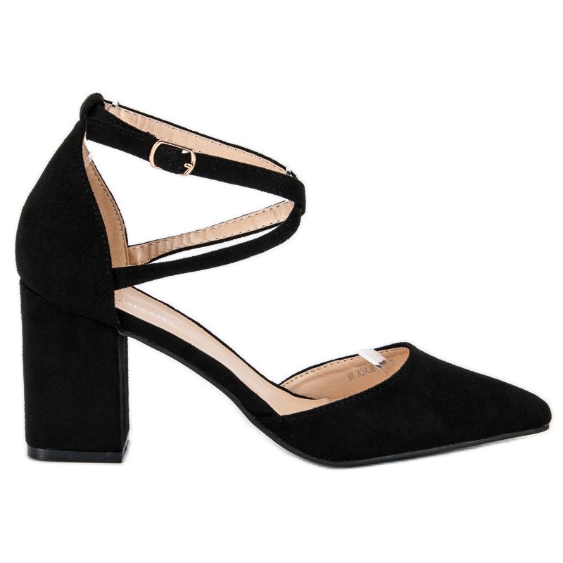 Les escarpins sont équipés d'une fine bride avec un fermoir doré, qui non seulement maintient la jambe dans la bonne position, mais ajoute également élégance et féminité. Le bout rond souligne la subtilité de ce modèle, ce qui en fait un choix universel en toute occasion.