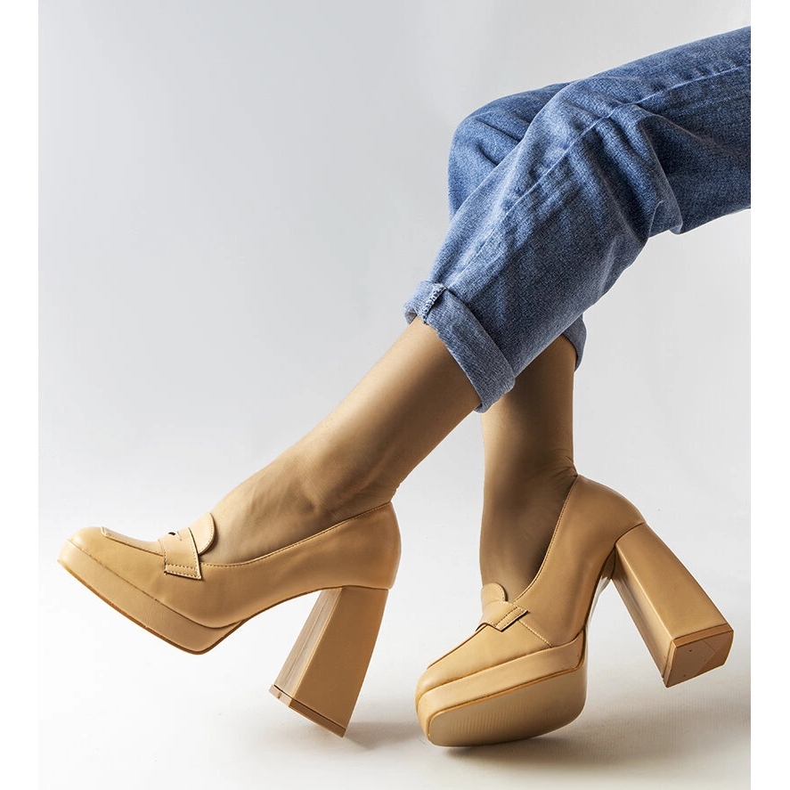 Ces escarpins beiges sur le poteau sont des produits "Autres Marques", classés dans la catégorie "Chaussures femme". Ils sont fabriqués en cuir écologique, ce qui se traduit par leur modernité et leur souci de l'environnement. Ils ont un bout carré, assurant un pied stable, et la fermeture à enfiler permet un enfilage et un retrait faciles et rapides.