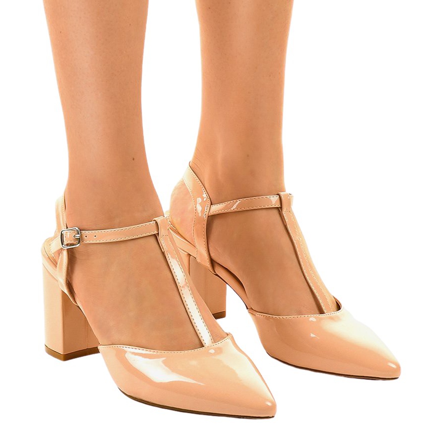 Fabriqués à partir de cuir écologique de la plus haute qualité, les escarpins séduisent par leur surface brillante, ajoutant de l'éclat à n'importe quel style. La couleur marron clair se marie parfaitement avec le teint, rendant les jambes plus longues et plus fines. Le nez en amande est un détail subtil qui souligne leur caractère élégant.