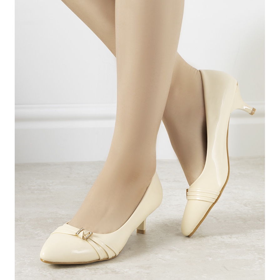 Découvrez l'élégance et le confort à la fois grâce aux escarpins à talons bas beiges de Majora ! Ces chaussures classiques, fabriquées en cuir écologique verni, sont le choix parfait pour les femmes actives qui veulent avoir du style dans toutes les situations.