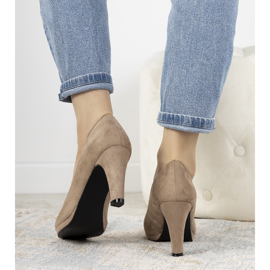 Les escarpins beiges à talons hauts en éco-cuir Sara sont un choix parfait pour les femmes qui apprécient l'élégance alliée au confort. Ce style classique fini en cuir écologique suède attire l'attention et s'intègre parfaitement dans les dernières tendances de la mode.