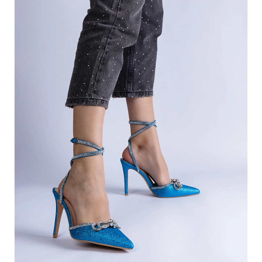 Inna marka Escarpins bleus à paillettes avec nœud et zircons