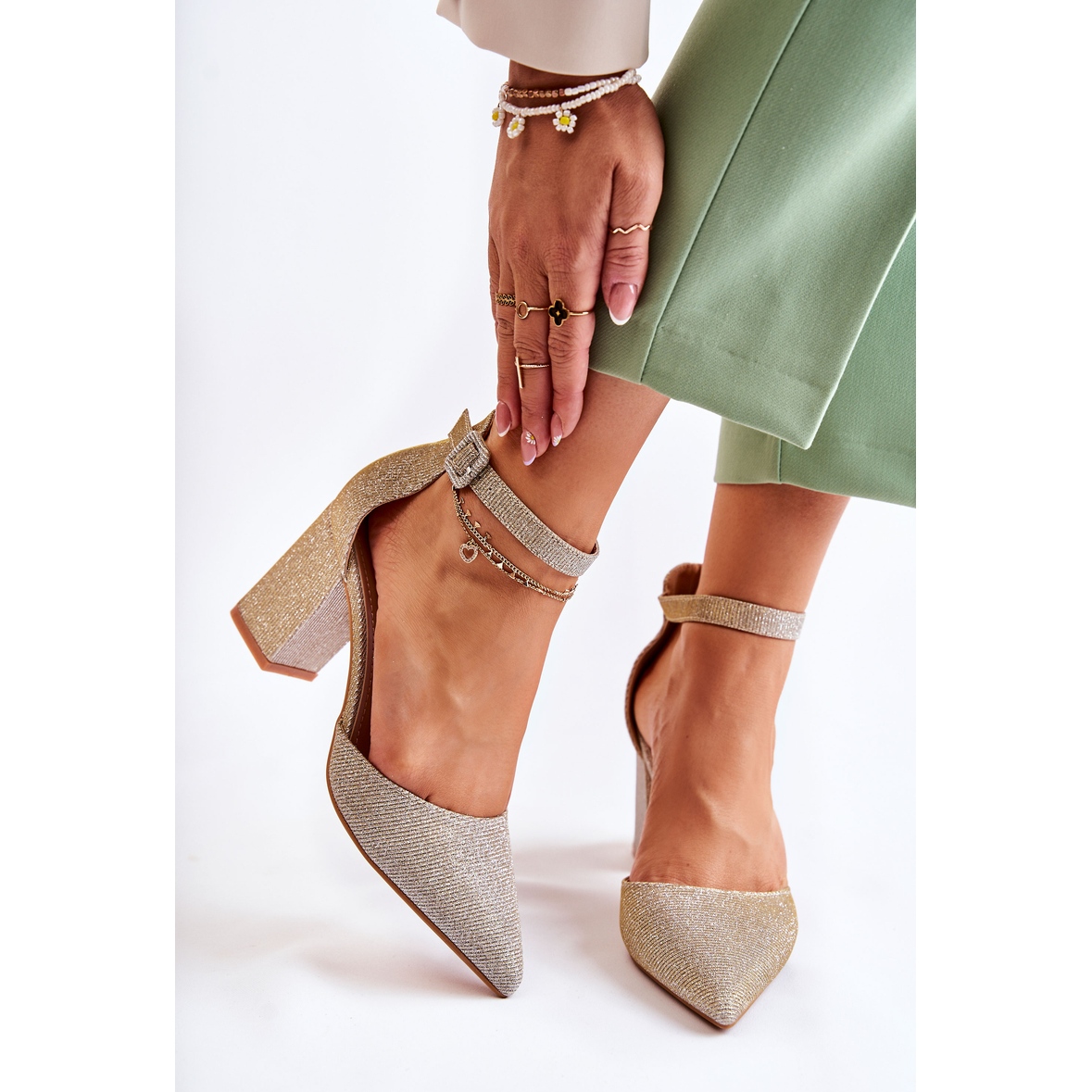 Détails: WS1 Escarpins brillants sur le Golden Amira Bar doré