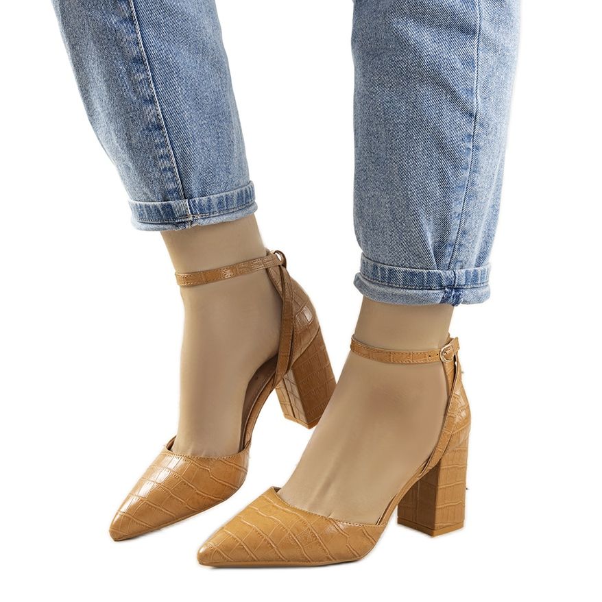 Ce sont d'élégants escarpins Davies à talons hauts camel qui séduisent par leur design tendance et leur couleur unique. Fabriquée en cuir écologique de haute qualité, la tige se caractérise par une structure élégante imitant la peau de crocodile, ce qui leur confère un caractère unique. Le modèle Davies est doté d'une bride entrelacée autour de la cheville, ce qui ajoute non seulement un look chic, mais offre également un maintien supplémentaire.