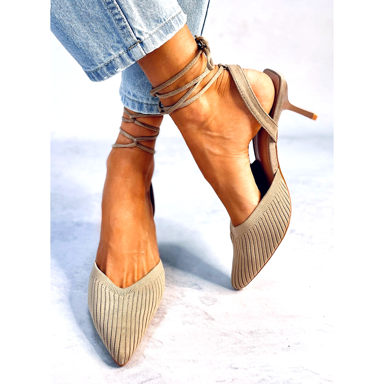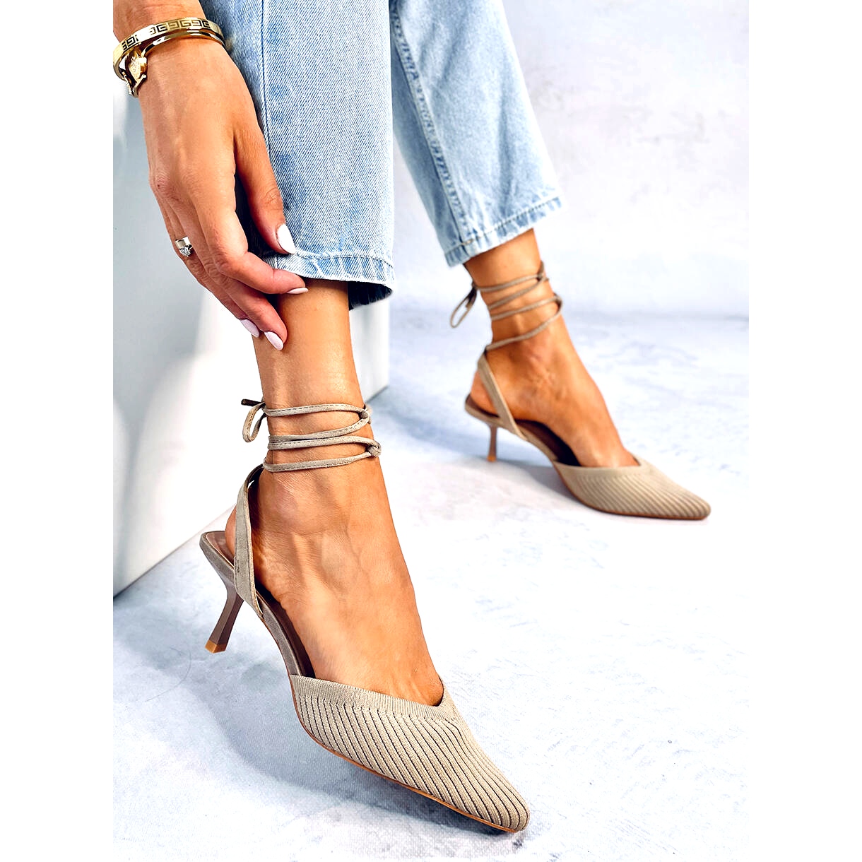 Détails: Escarpins chaussettes talon ouvert Cordier Kaki beige