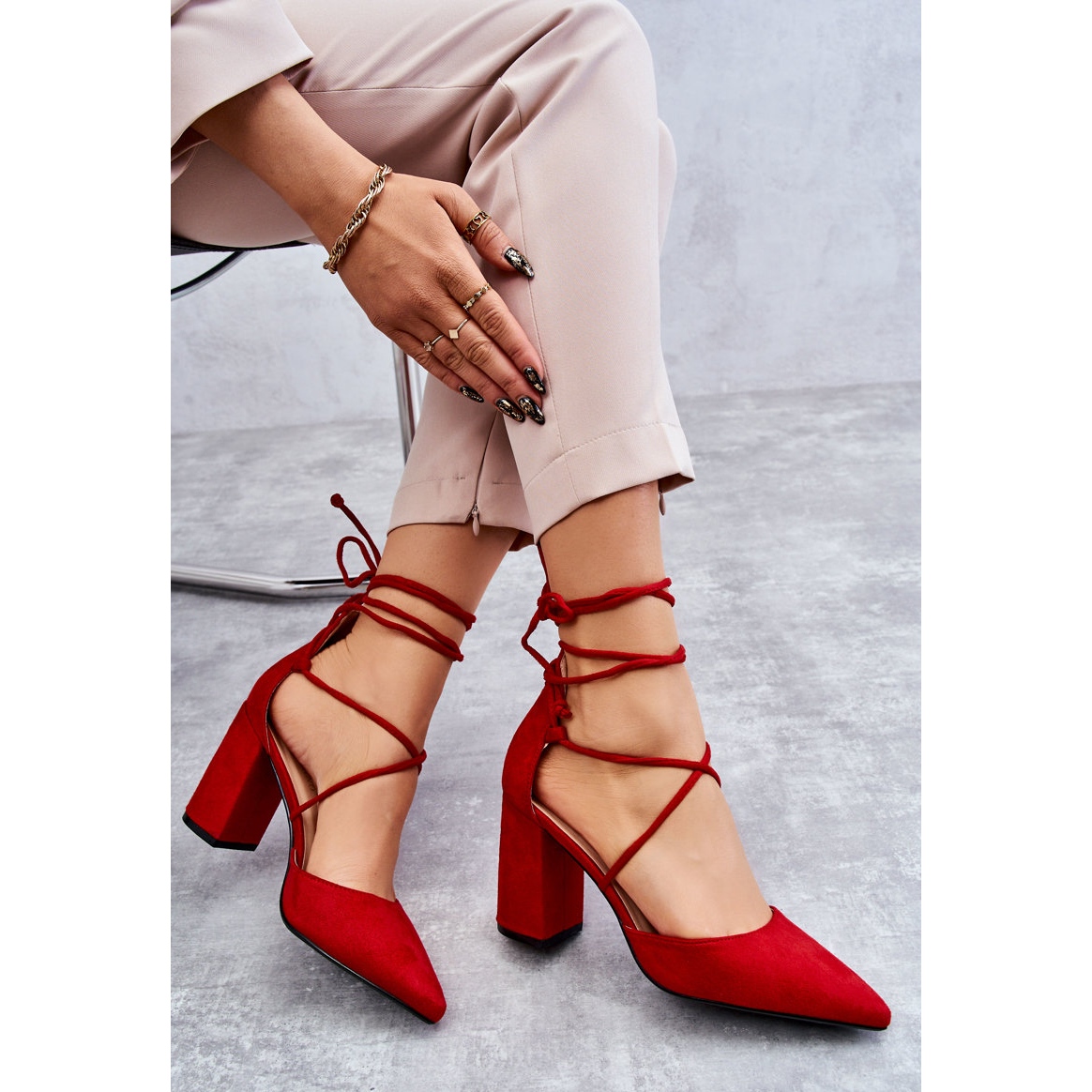 Leur design classique, monté sur un talon bloc stable de 9 cm de haut, les rend parfaites pour diverses occasions, des promenades quotidiennes aux sorties en soirée. Un nez pointu et sensuel ajoute de la sophistication, et le lien autour du mollet met parfaitement en valeur les jambes, créant une silhouette séduisante.