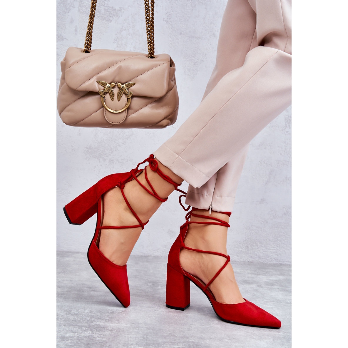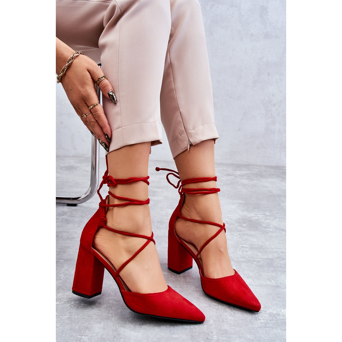 Découvrez un style et une élégance uniques avec les escarpins classiques à lacets en daim de la marque PA1. Fabriqués en éco-cuir de haute qualité, ces escarpins d'une couleur rouge intense attireront certainement l'attention et ajouteront un peu de confiance en soi à chaque femme.