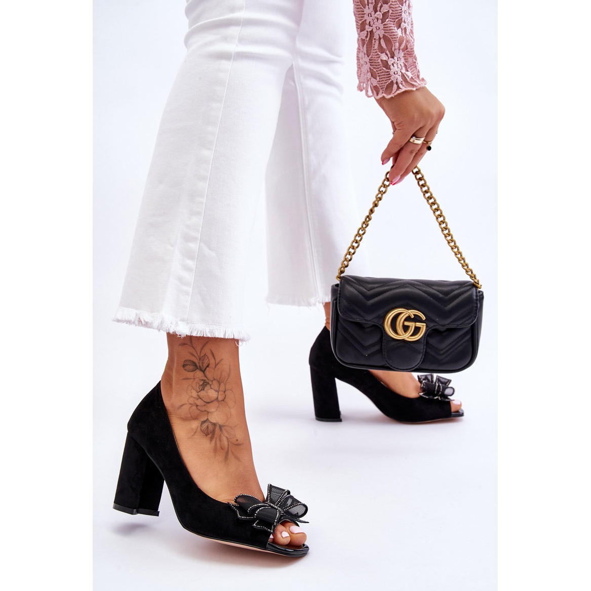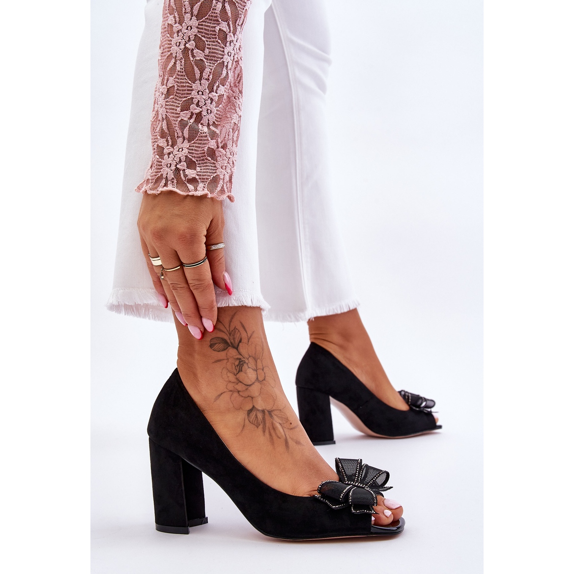 Elegant Pumps S. Barski Corey - Un classique dans une édition moderne. Fabriqué en éco-honte en noir intemporel, idéal pour le bureau et pour les sorties du soir. Le devant est décoré d'un arc à la mode avec des zircons délicats, ce qui ajoute une lueur subtile de tout style. Un poteau irrégulier de 8,5 cm de haut assure la stabilité et un profil féminin de la figure, et la structure de glissement garantit une hypothèse rapide et pratique.