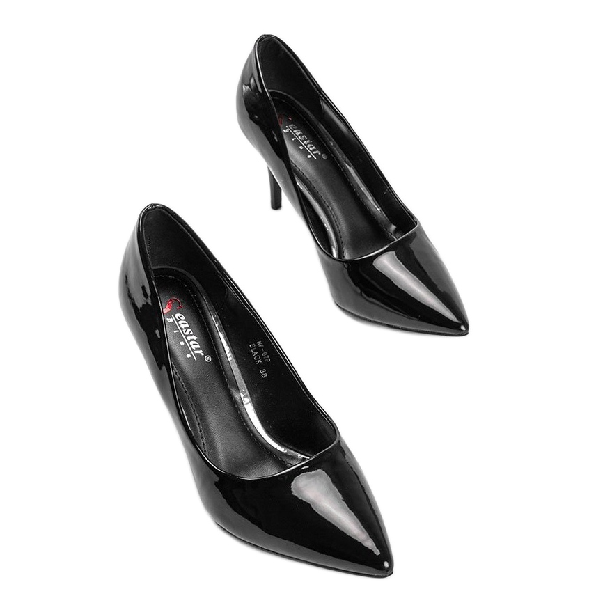 Détails: Escarpins classiques laqués noirs sur le talon aiguille Allyssa le noir