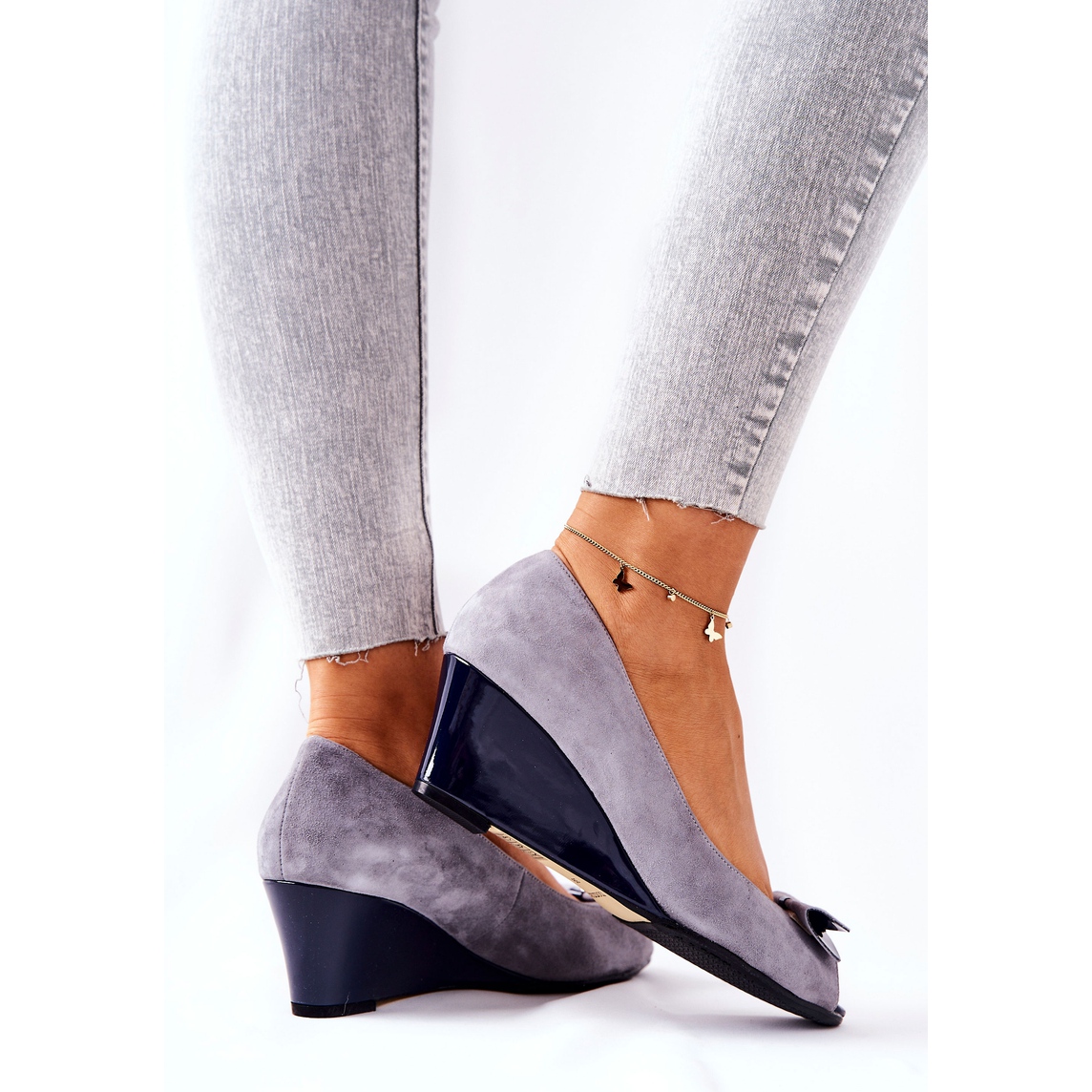 Escarpins compensés confortables et élégants. Les chaussures sont en peau de chamois naturelle. Ils ont un bout ouvert et un charmant nœud avec un emblème décoratif Monnari. Vous devez absolument les avoir ! Rejoignez le groupe de clients ravis et profitez d'une nouvelle paire de chaussures ! Lorsque vous choisissez une taille, veuillez utiliser le tableau des tailles.