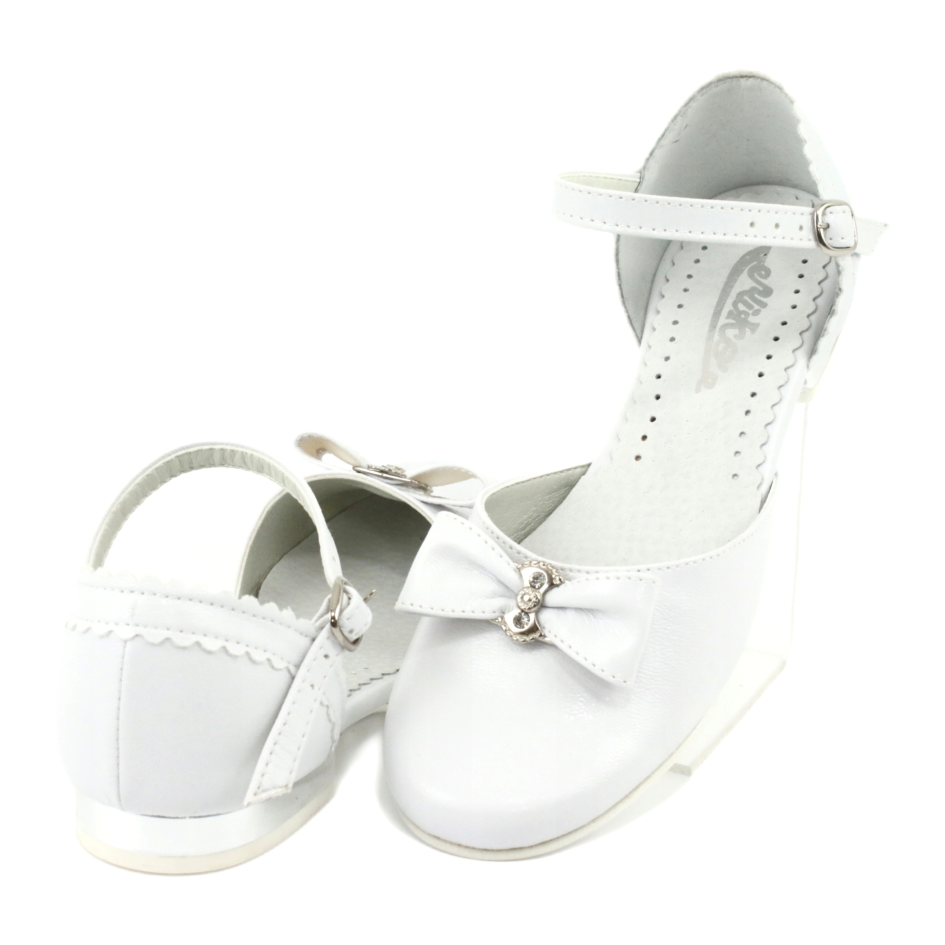 Nous vous présentons de magnifiques escarpins de communion qui raviront sûrement toutes les petites filles. Le modèle Miko 671 en blanc est la chaussure parfaite pour ce jour extrêmement important. Fabriqués par une marque polonaise renommée, les escarpins allient élégance et confort, ce qui en fait un excellent choix pour les célébrations de la première communion et autres occasions spéciales.