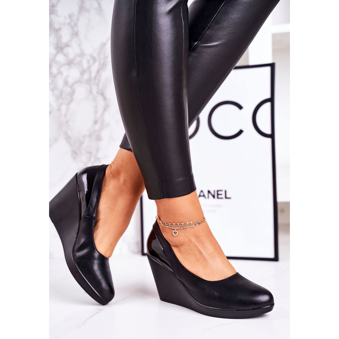 Détails: J.STAR But Escarpins Compensés Classiques Femme Laqué Noir Ivonne le noir
