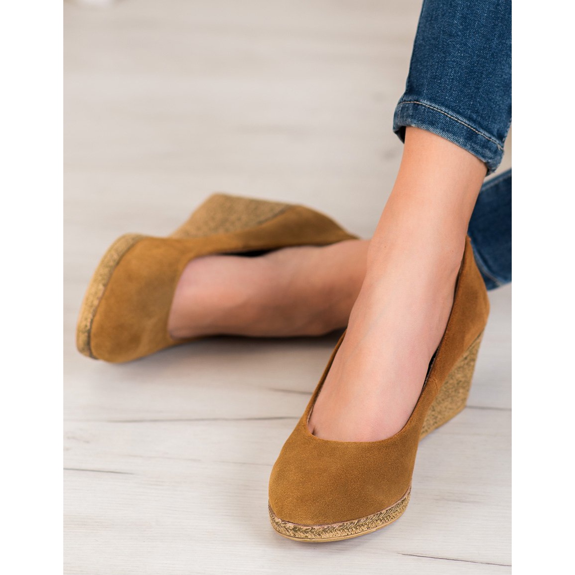 Des bouts ronds et une coupe spécialement profilée font de l'enfilage de ces chaussures un pur plaisir. La cale de 7 cm de hauteur est posée sur une semelle solide et synthétique, qui assure stabilité et confort au quotidien. Un avantage supplémentaire est la plateforme marron foncé avec un motif peint, qui donne aux chaussures un caractère subtil.
