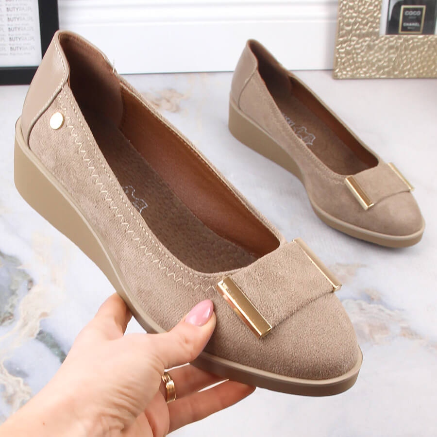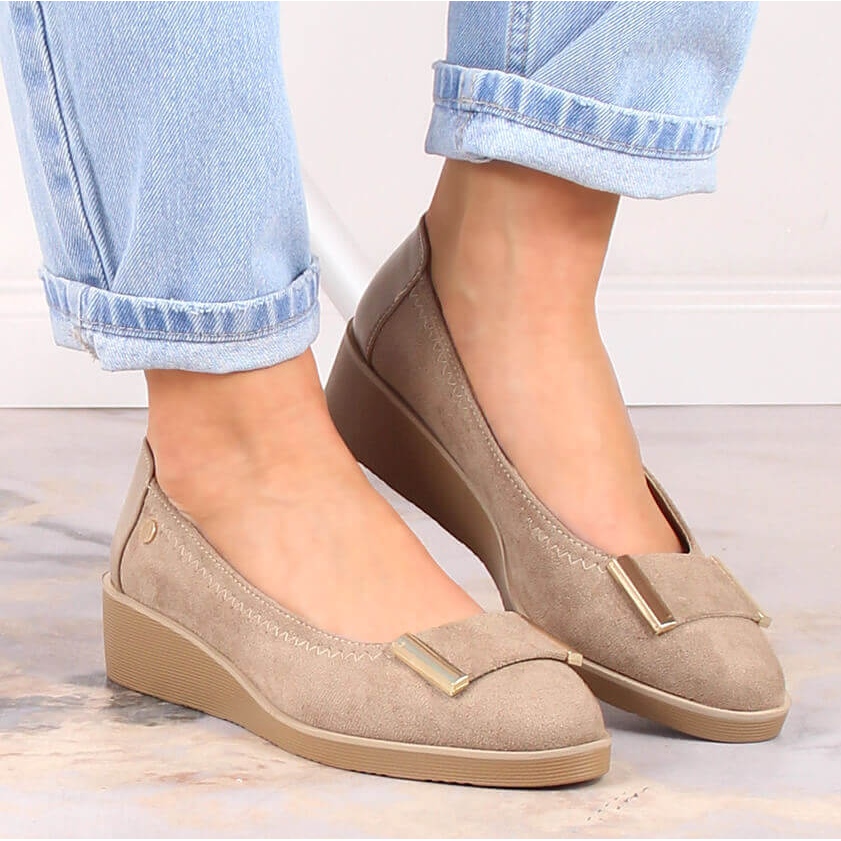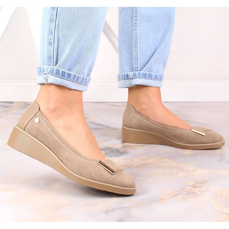 M. DASZYŃSKI M. DASZYŃSKI Escarpins compensés en daim pour femmes beige M.Daszyński MR2265-4