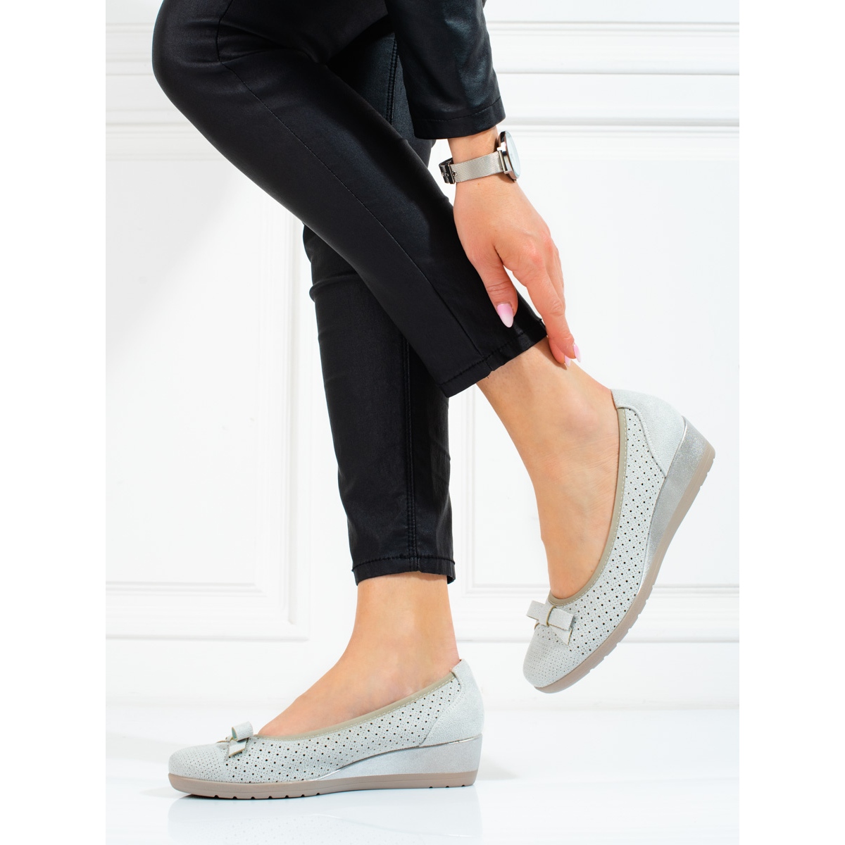 Les escarpins compensés bas pour femmes de W. Potocki sont le choix parfait pour les femmes qui apprécient à la fois le confort et l'élégance. Fabriquées en daim gris écologique, ces chaussures ajourées ont un style subtil qui s'accorde parfaitement avec une variété de styles quotidiens et formels.