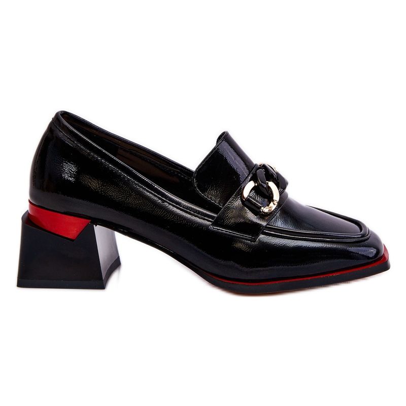 Pompes élégantes et confortables avec une coupe universelle et intemporelle - idéale pour le bureau et les sorties. Le modèle "Valenti" combine une forme classique avec une finition moderne et verni et une décoration subtile sous la forme d'une chaîne plastique. Un talon bas et stable du bloc et un insert doux de cuir naturel assurent le confort tout au long de la journée, et le talon raidi stabilise le pied lors de la marche.