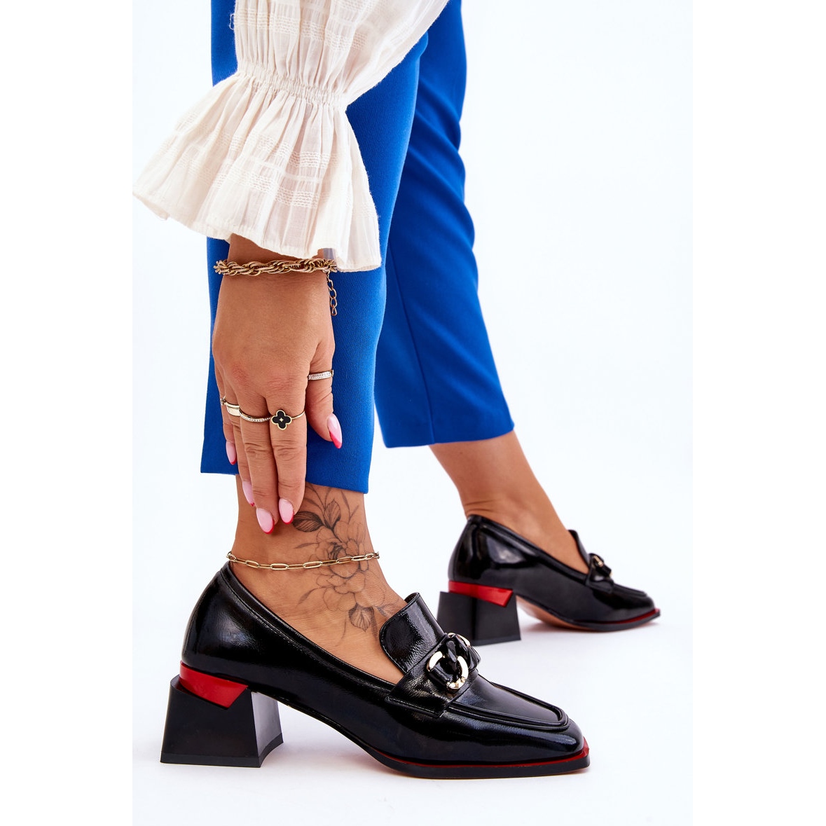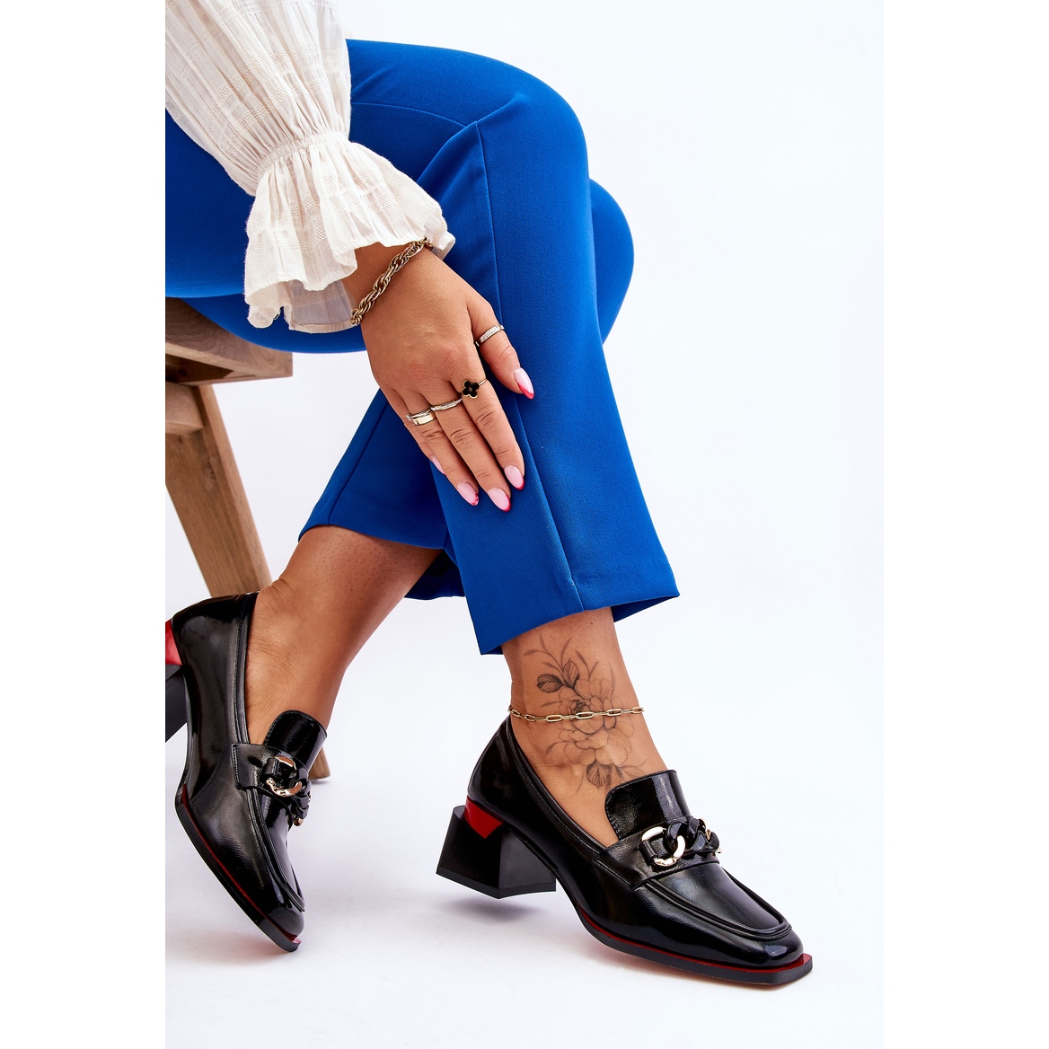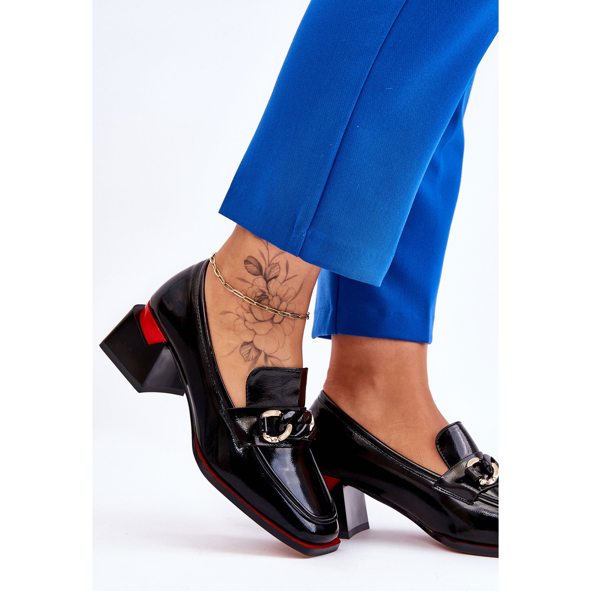 Ce modèle se caractérise par un talon bloc bas et stable d'une hauteur de 5,5 cm, qui assure un confort même lorsqu'il est porté toute la journée. La tige décorée d'une chaîne en plastique unique donne du caractère aux chaussures et attire subtilement le regard, créant un accent visuel intéressant. Le produit en cuir écologique de haute qualité est extrêmement élégant et répond à la demande croissante d'options de mode éthiques.