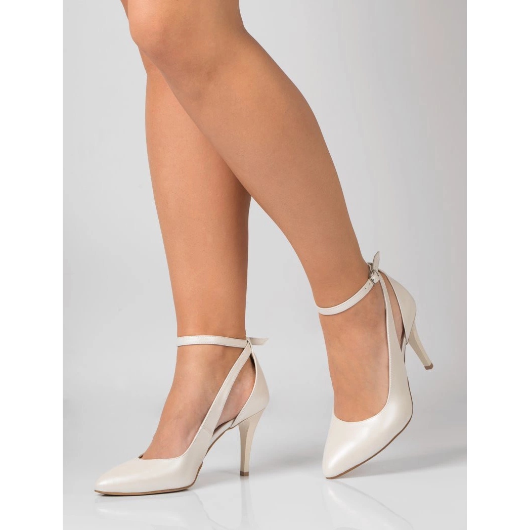 Détails: BUTDAM Escarpins de danse en cuir fixés à la cheville avec une découpe écru par Livia blanc