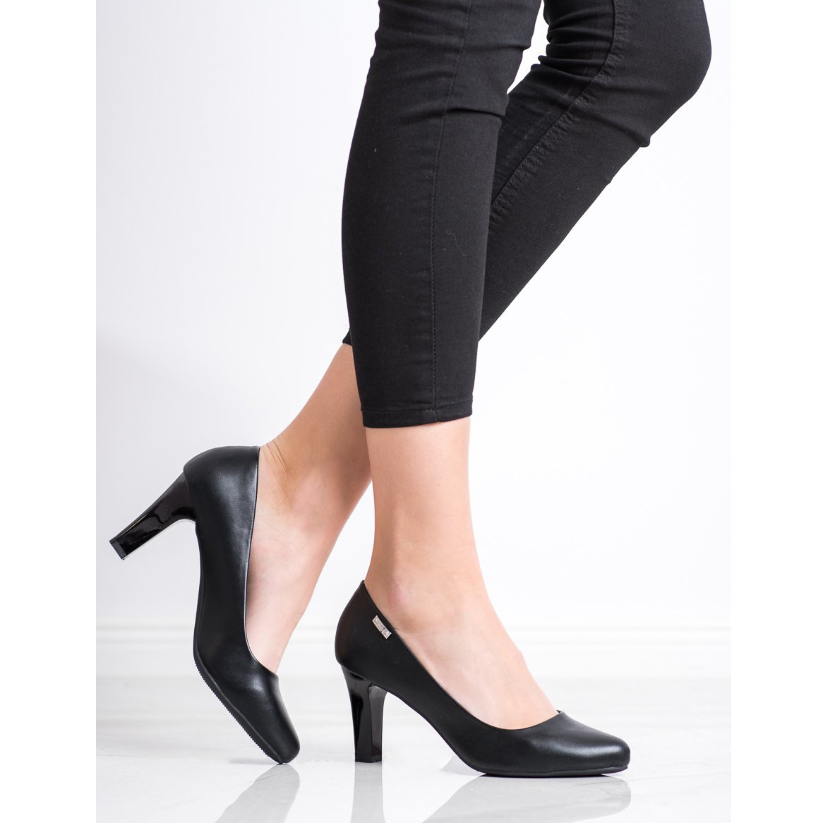 Ces escarpins classiques ont un talon de 8 cm, ce qui ajoute de la légèreté à la silhouette et assure en même temps la stabilité lors de la marche. Fabriqués en simili cuir de haute qualité, tant à l'extérieur qu'en partie à l'intérieur, ils offrent un plaisir de porter sans compromis. Le cuir naturel utilisé dans la semelle intérieure permet aux pieds de respirer, ce qui augmente le confort de port.