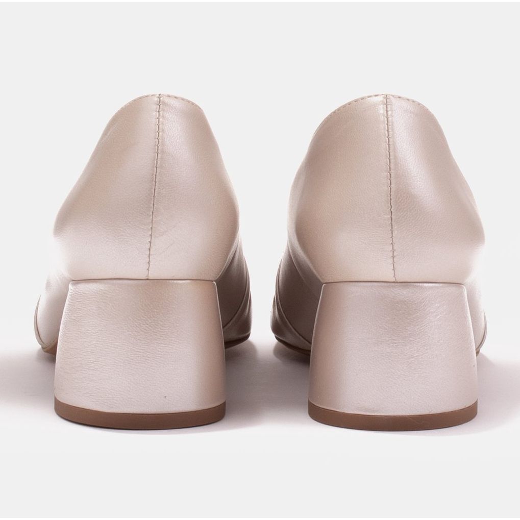 L'utilisation de cuir fleur naturel dans la structure extérieure de la chaussure garantit non seulement une belle apparence, mais également une utilisation durable. La couleur dorée des escarpins ajoute du prestige et est si universelle qu'elle s'adapte à de nombreux styles et couleurs. Grâce aux inserts en cuir, le confort est au plus haut niveau et vos pieds peuvent se sentir à l'aise tout au long de la journée.