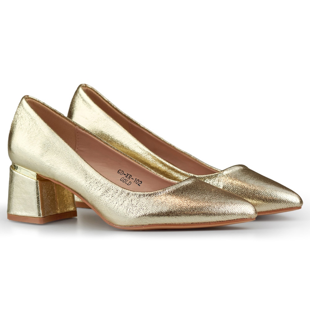 Détails: Escarpins dorés à talons bas, chaussures dorées élégantes pour femmes