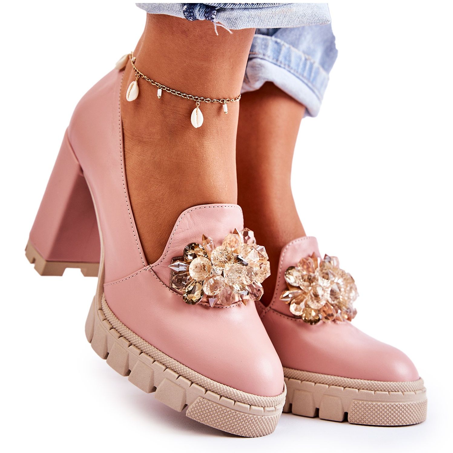 ### Escarpins PA2 élégants avec décoration - rose lisse et beige