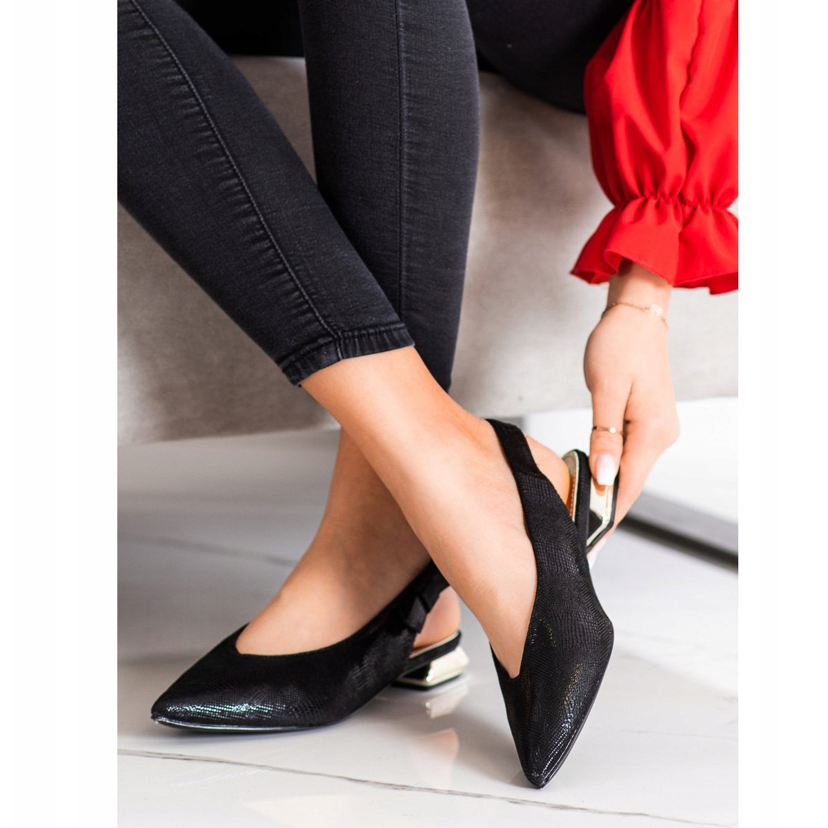 Dotées d'un talon plat de 2 cm de haut, elles offrent stabilité et confort, ce qui en fait une solution parfaite pour les longues promenades ou les réunions. Le bout rond leur confère un caractère classique, et le talon ouvert les rend très faciles à enfiler. Un nœud délicat est un accent subtil qui souligne leur style élégant.