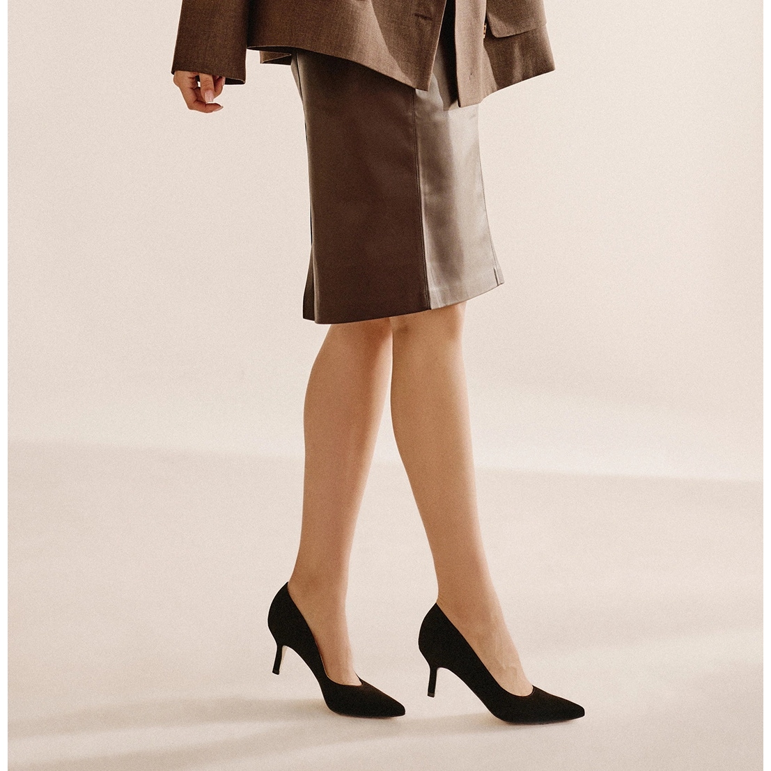 Ce modèle n'a pas de décorations supplémentaires - son avantage est la simplicité et le design classique. Et la forme de maintien sur la jambe est assurée par un fermoir à enfiler. Bien qu'à première vue ils paraissent très classiques, leur charme réside dans le nez fin et pointu qui ajoute à leur originalité.