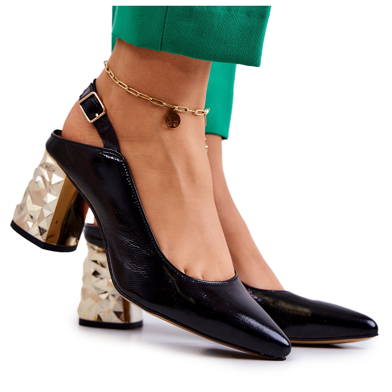 Détails: Escarpins En Cuir On A Bar Maciejka 05427-01 Noir doré