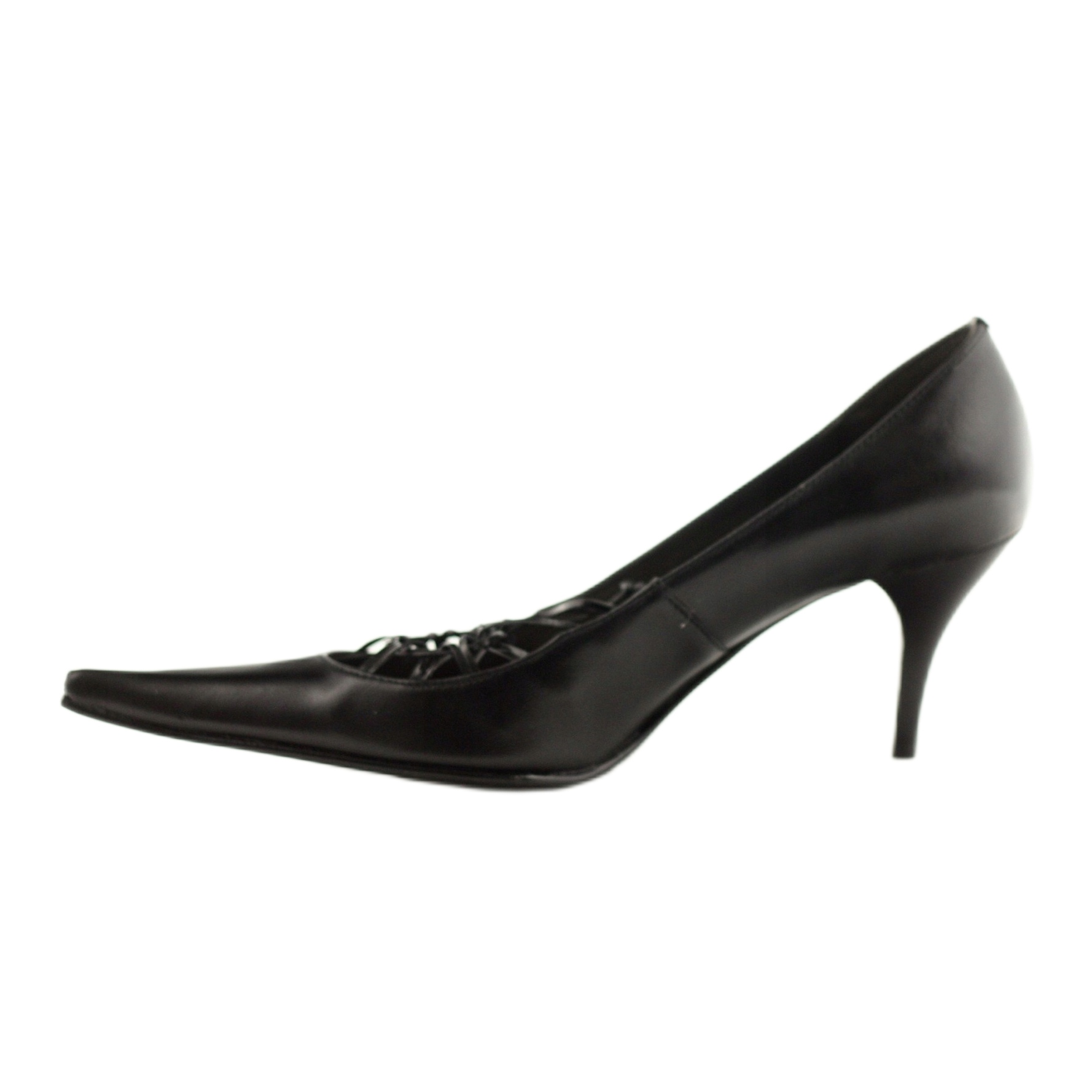 Le modèle 868 se distingue par une tige intéressante, et le bout pointu ajoute chic et féminité. La hauteur du talon de 7 cm assure une stabilité adéquate, ce qui rend les escarpins non seulement esthétiques, mais aussi confortables à porter pendant longtemps. De plus, le matériau de la semelle en synthétique est durable et résistant à l'abrasion.