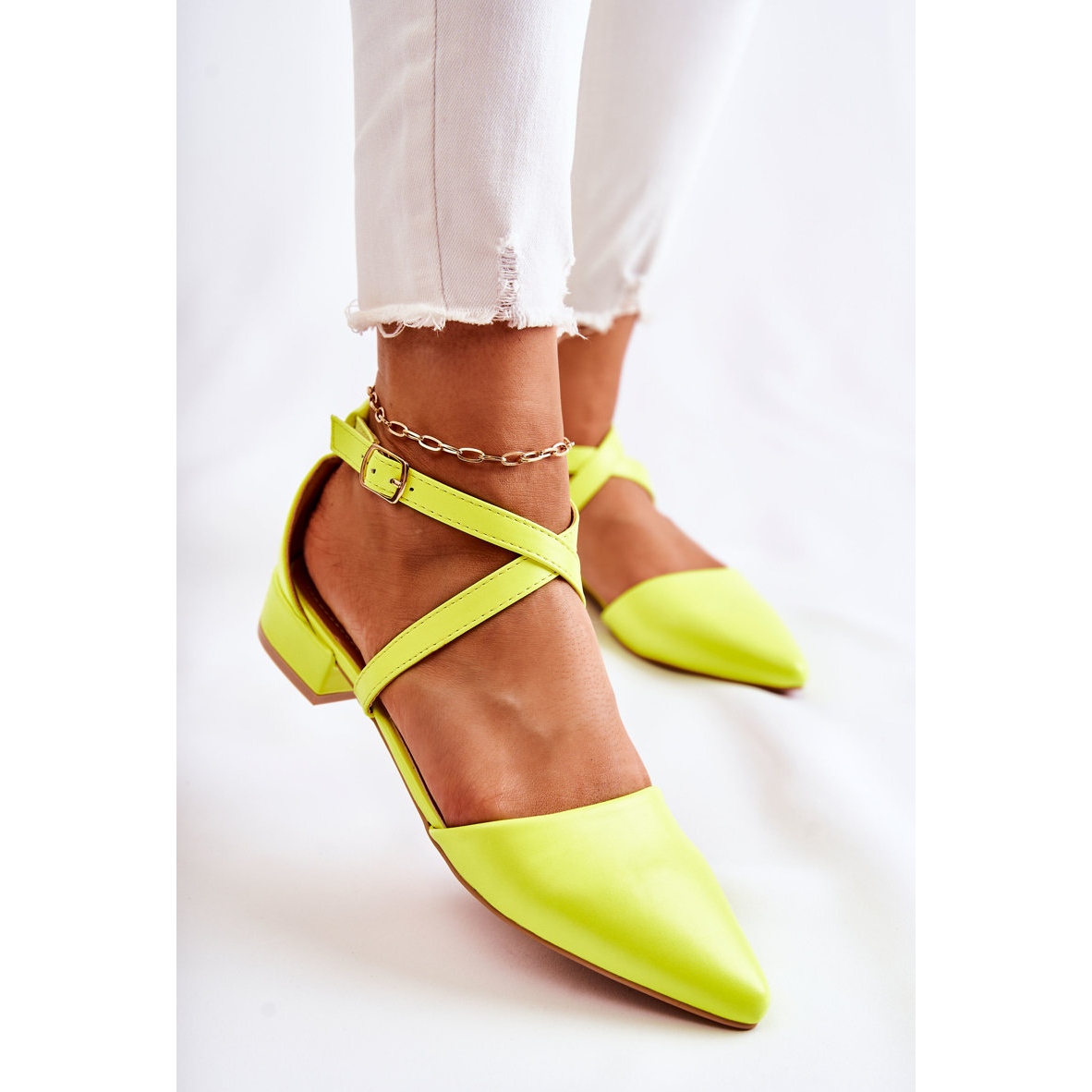 Le modèle se caractérise par un bout pointu et une tige stable et basse d'une hauteur de 2,5 cm, ce qui le rend parfaitement adapté au pied de la femme, soulignant ses avantages. La semelle intérieure en éco-cuir souple ajoute encore plus de confort, afin que vous puissiez bouger librement à chaque pas.