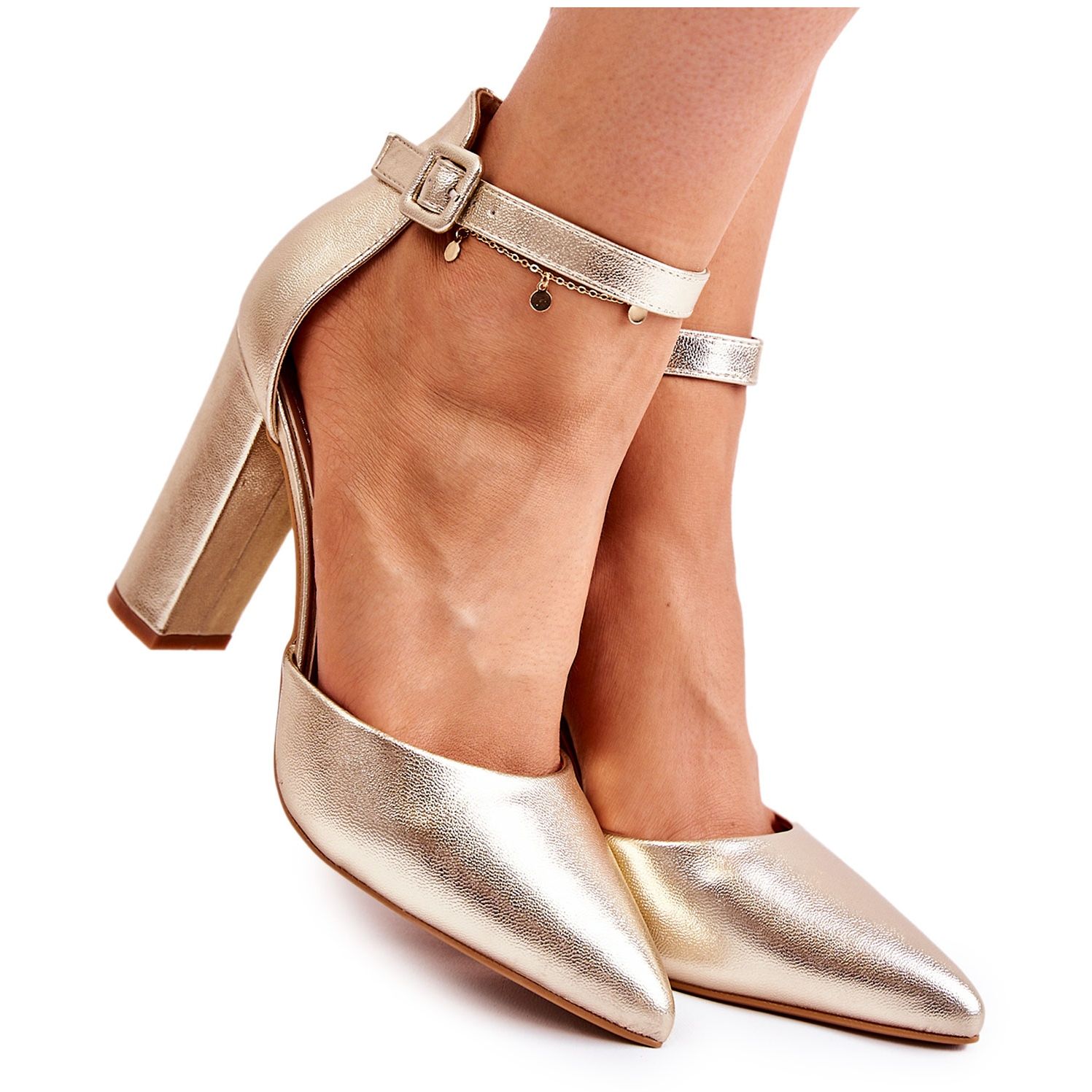 Fabriqués en cuir écologique de haute qualité, ces escarpins offrent non seulement un look prestigieux, mais aussi un choix éthique. L'éclat métallique unique souligne le caractère exclusif des chaussures, constituant un accent accrocheur pour de nombreux styles. Une boucle avec une sangle réglable, équipée en plus d'une bande élastique, assure un ajustement optimal à la cheville, garantissant un confort même lors de longs événements.