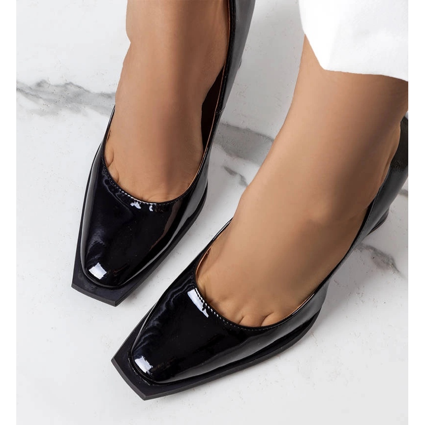 Des pompes élégantes et classiques en cuir écologique verni, qui mettra l'accent sur chaque stylisation - du bureau à la soirée. Un modèle avec une coupe intemporelle avec un orteil carré et un type de talon stable.