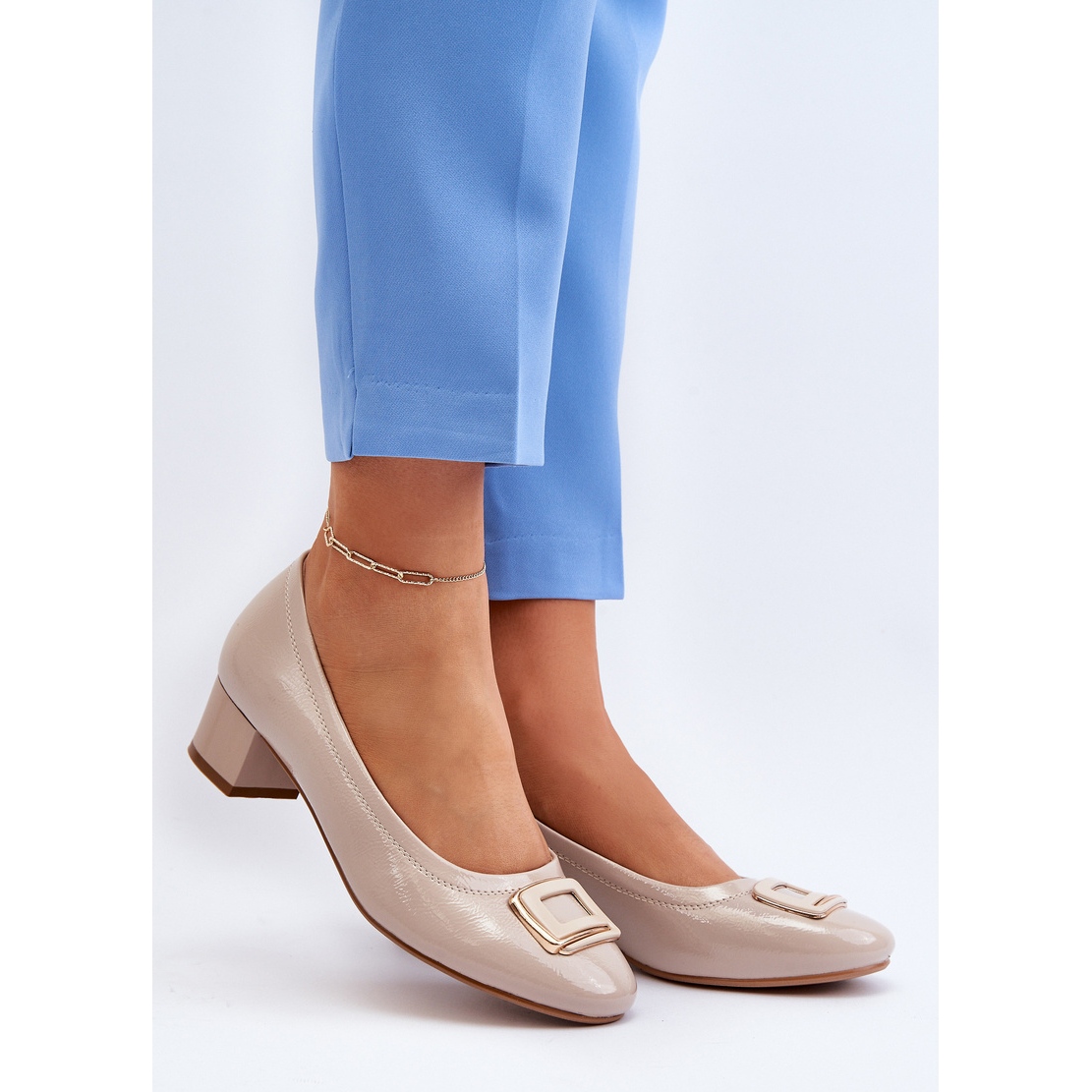 Détails: Vinceza Escarpins en cuir verni sur bloc avec décoration, Beige Enollia