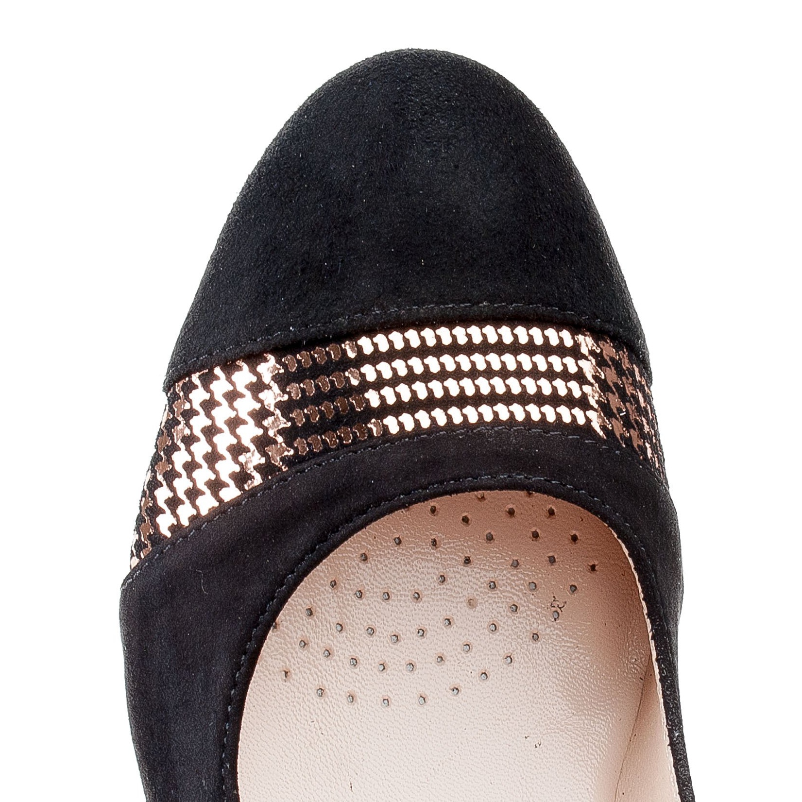 Ces escarpins se distinguent par une fabrication de haute qualité en cuir suédé naturel, tout en assurant un confort de port grâce à l'intérieur doux, également doublé de cuir naturel. La semelle intérieure en cuir permet au pied de respirer tout au long de la journée, réduisant ainsi les risques d'odeurs désagréables et d'irritations.