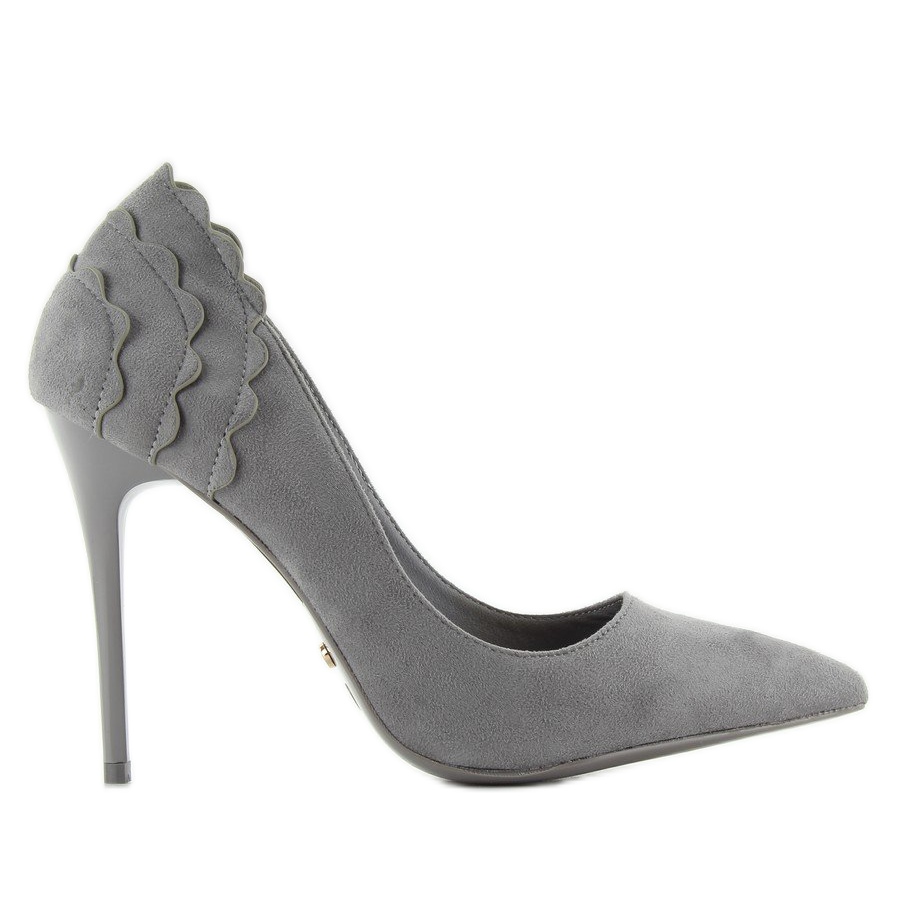 Les talons aiguilles en daim gris à volants LE031 sont un choix idéal pour les femmes qui apprécient l'élégance et le style subtil. Ces chaussures classiques au talon fin de 10,5 cm se distinguent non seulement par leur esthétique, mais aussi par leur confort de port. Fabriqués en daim écologique charnu, ils offrent une excellente qualité et un confort qui dure toute la journée.