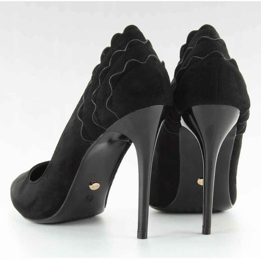 Ce sont les talons hauts uniques en daim noir LE031 avec un volant - le choix parfait pour les femmes élégantes qui souhaitent ajouter un peu d'unicité à leur style. Ces talons hauts classiques pour femme, dotés d'un talon fin de 10,5 cm, mettent parfaitement en valeur la silhouette féminine et leur finition en daim leur confère un aspect extrêmement luxueux.