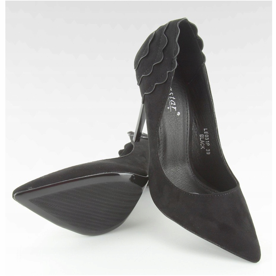 Les talons aiguilles LE031 Noir sont dotés d'un fermoir à enfiler, ce qui les rend extrêmement confortables à enfiler. L'intérieur des chaussures est fini en cuir écologique, ce qui augmente encore le confort d'utilisation. Le bout pointu affine la jambe et le talon aiguille souligne parfaitement leur caractère élégant.