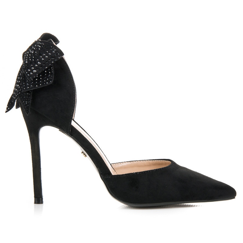 Le bout rond et le talon aiguille fin confèrent à la silhouette des jambes un aspect extrêmement féminin et élégant. Un accent supplémentaire est un arc, qui ajoute un charme subtil et vous permet de vous démarquer dans la foule.
