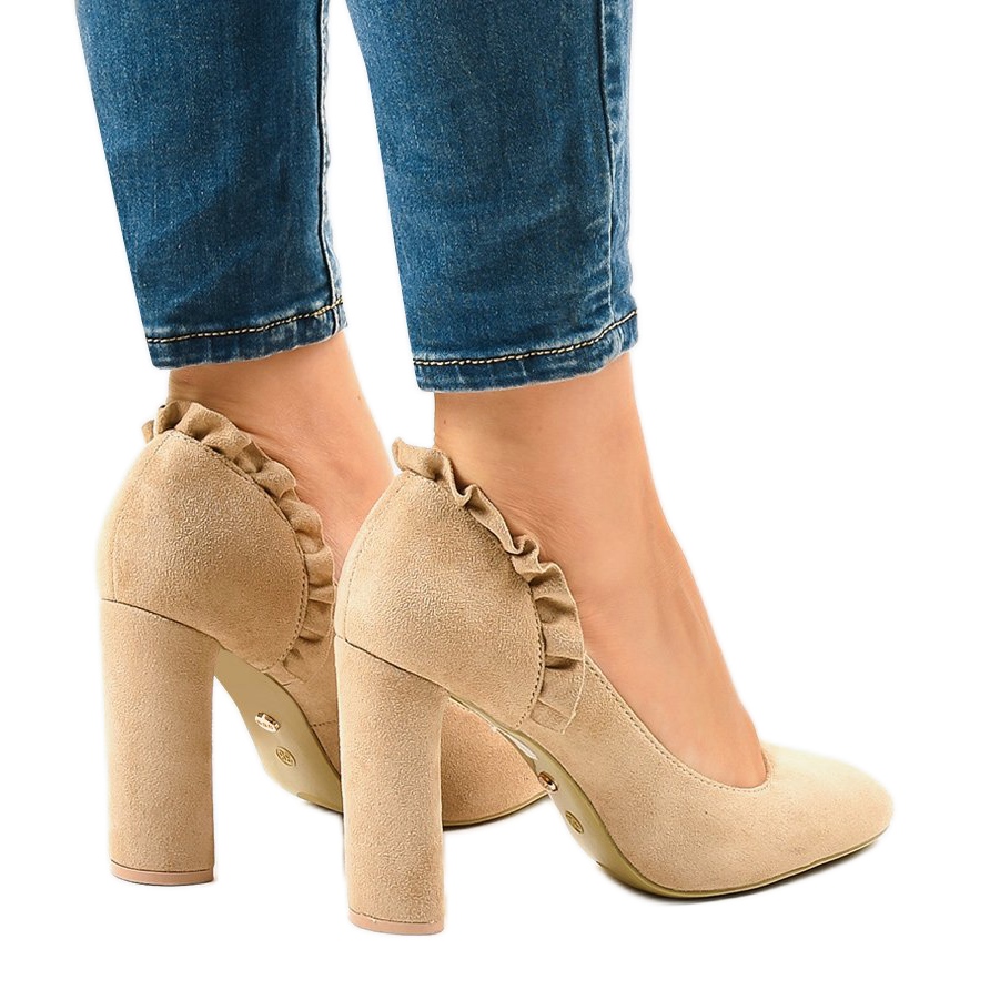 Les escarpins à talons hauts en daim beige LE037P sont un choix parfait pour les femmes qui apprécient l'élégance et le style. Ces chaussures classiques en cuir allient subtilité et accent moderne qui leur confèrent un caractère unique. Leur charme est rehaussé par un charmant volant placé à l'arrière, qui distingue ce modèle des autres.