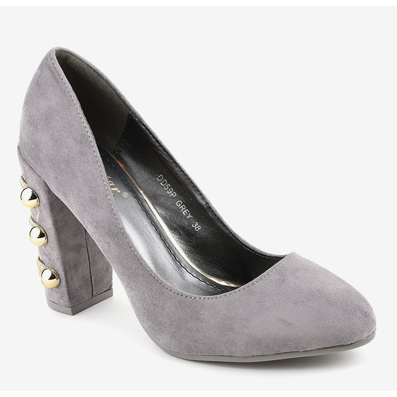 Découvrez l'élégance et le confort avec les escarpins à talons hauts DD59P en daim gris. Ce modèle unique allie une forme classique à des décorations uniques qui lui confèrent un caractère unique. Le talon bloc de 10 cm de haut attire l'attention et permet de ne pas ignorer ces chaussures.
