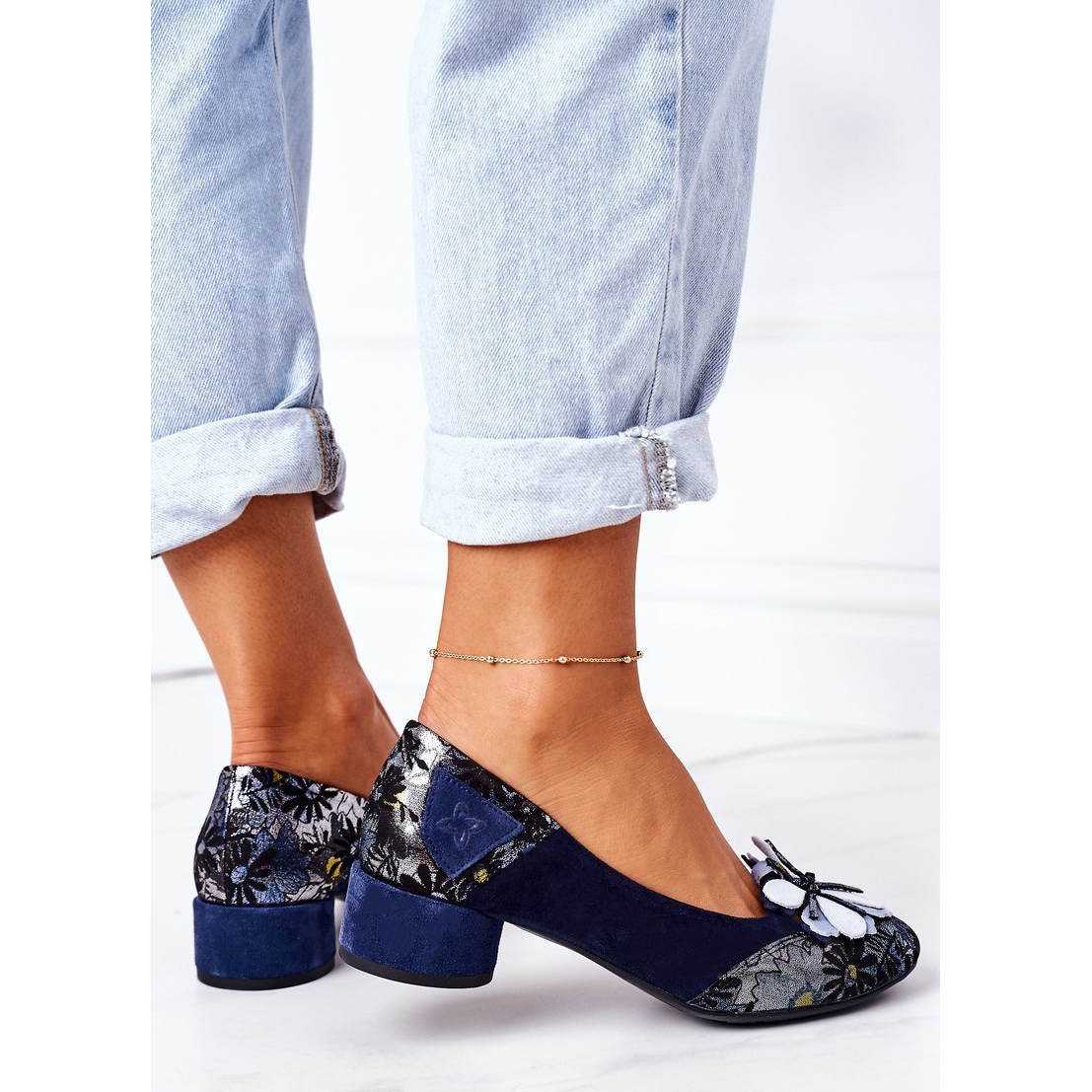 Maciejka Escarpins En Daim Maciejka 04835-17 Bleu Marine Avec Fleurs