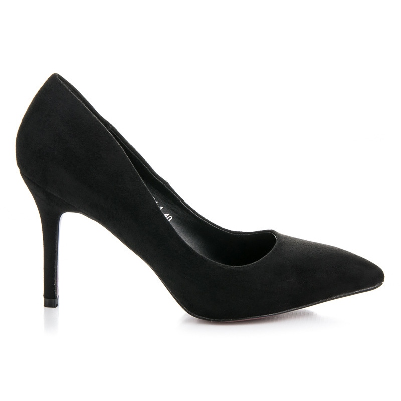 La fermeture à enfiler facilite l'enfilage et le retrait des chaussures, ce qui en fait un excellent choix pour les femmes qui apprécient le confort. Un insert fabriqué dans un matériau différent augmente en outre le confort de port. Les talons hauts Bestelle en daim noir sont un incontournable de toute garde-robe, ils attireront certainement l'attention et seront le complément parfait à n'importe quelle tenue. Choisissez Bestelle et soulignez votre style unique !