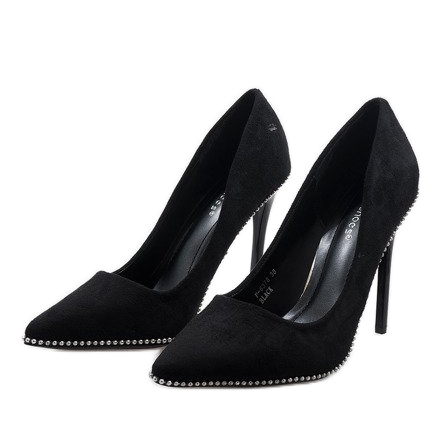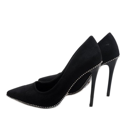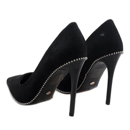 Découvrez l'élégance et le style classique avec les talons hauts en daim noir P-6378. Ces belles chaussures, fabriquées dans un matériau semblable à du daim de haute qualité, sont le complément parfait à n'importe quel style. Les talons aiguilles de 10 cm de haut ajoutent de l'élégance, et leurs décorations design avec strass sur le pourtour leur confèrent un caractère unique.