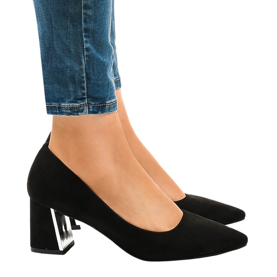 Escarpins en daim noir sur le pilier L439