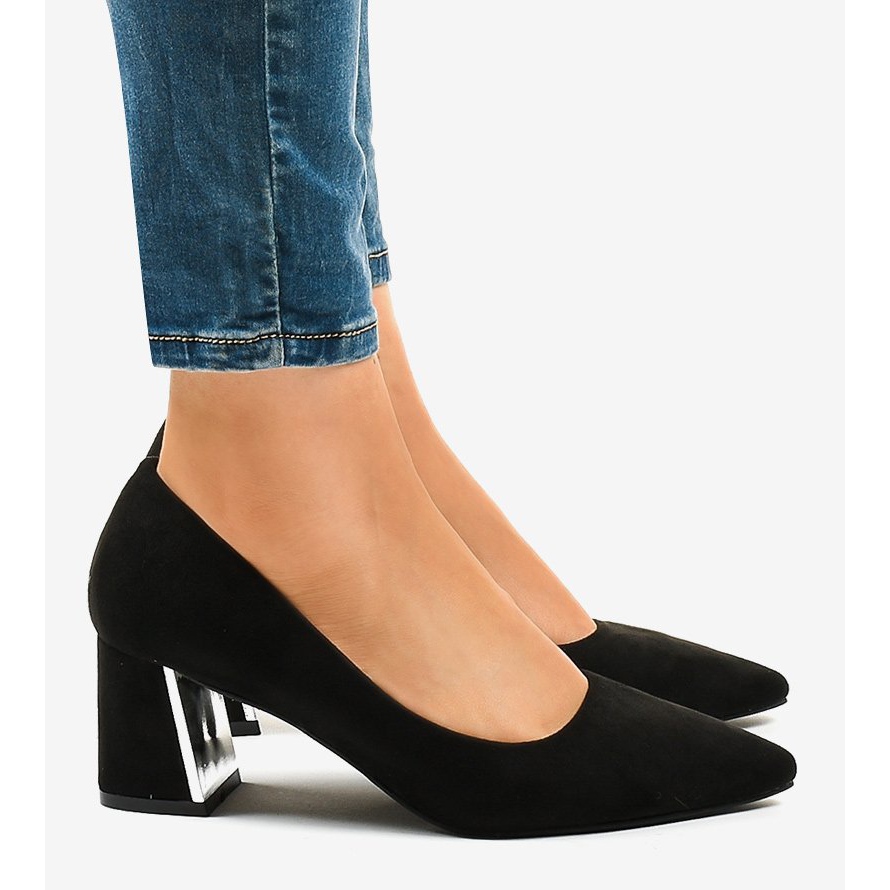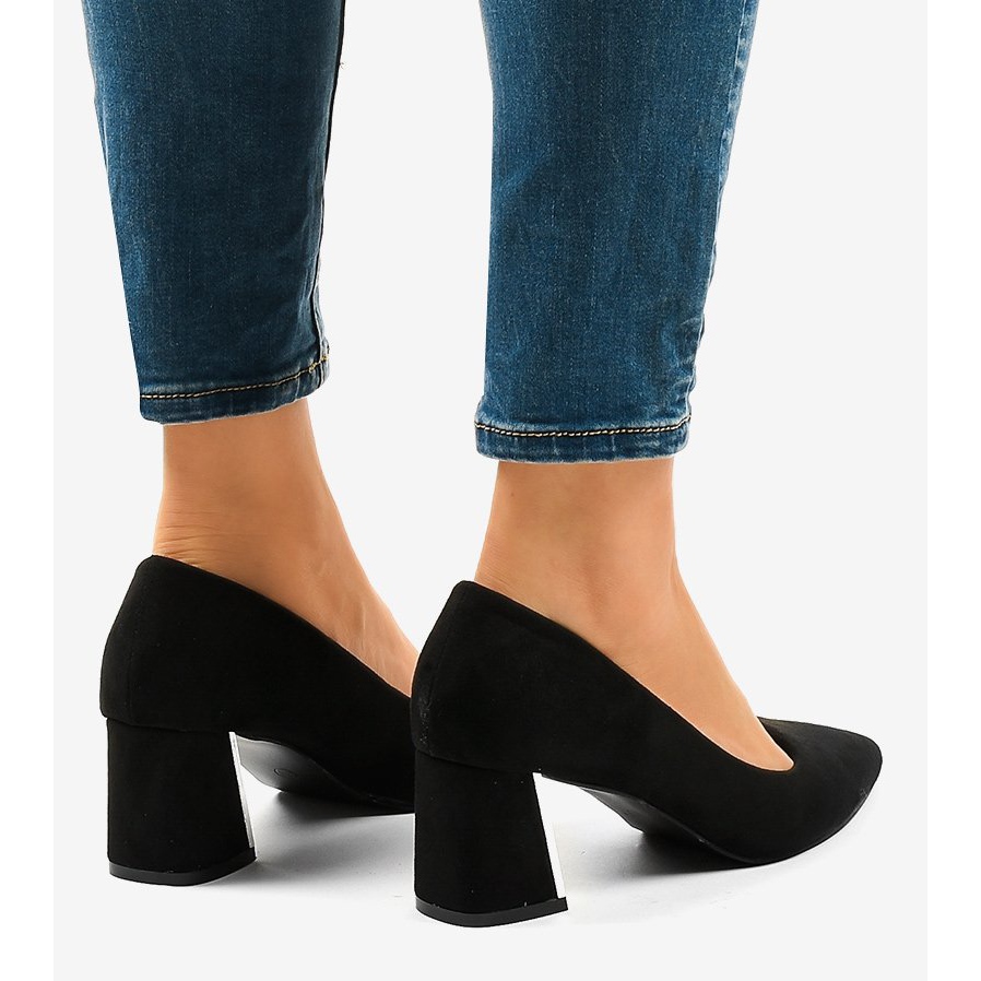 Détails: Escarpins en daim noir sur le pilier L439 le noir