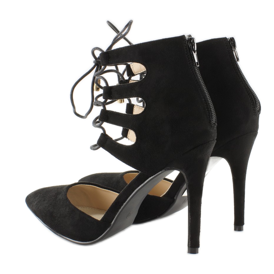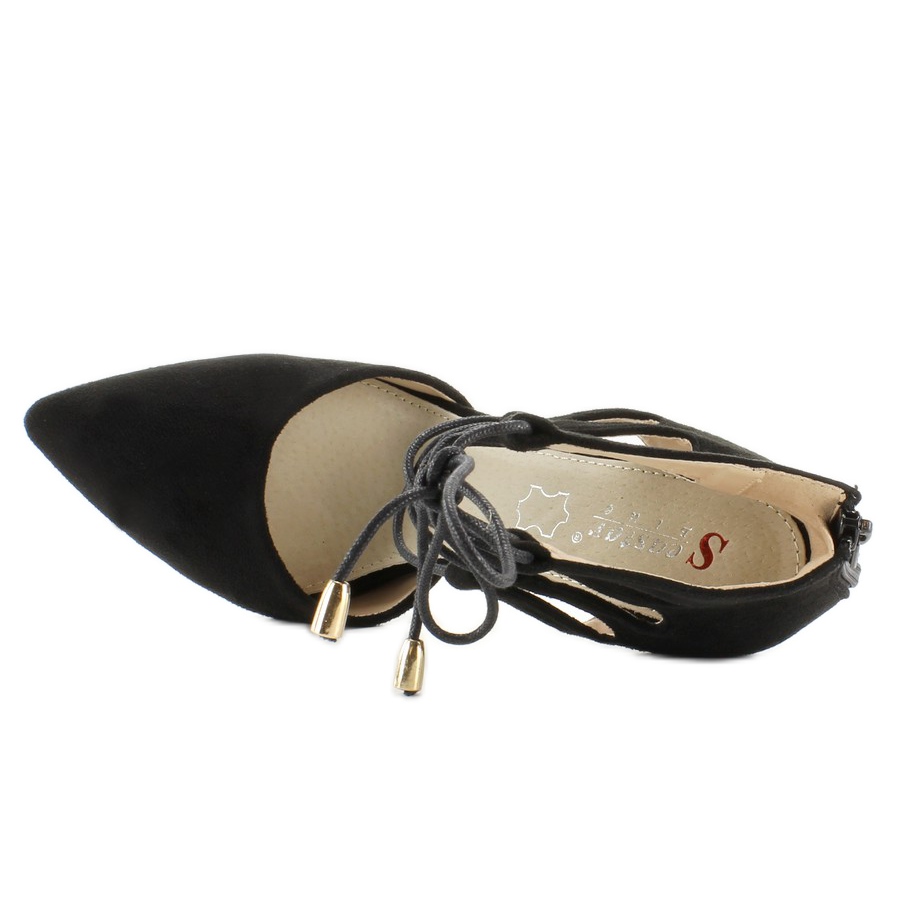 Nous vous présentons d'élégants talons hauts en daim dans une couleur noire classique, qui sont un incontournable de la saison à venir ! Fabriqués en daim écologique charnu de haute qualité, ces escarpins non seulement sont superbes, mais garantissent également un confort de port.